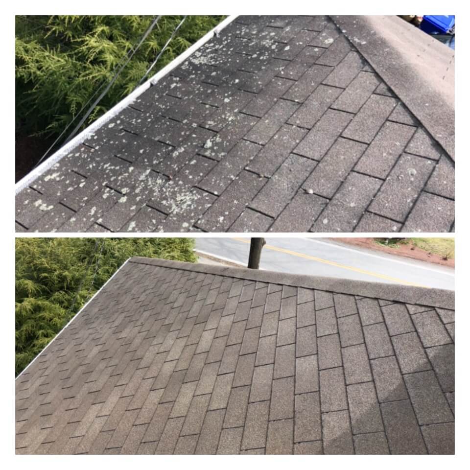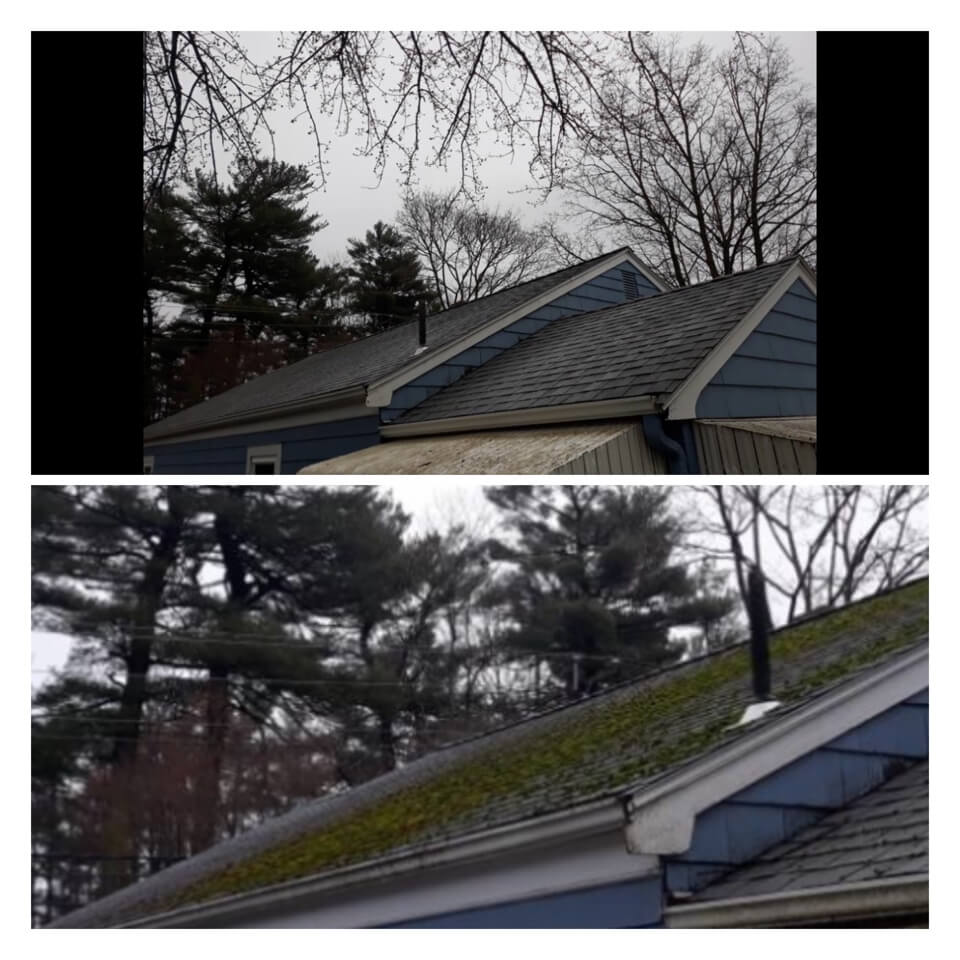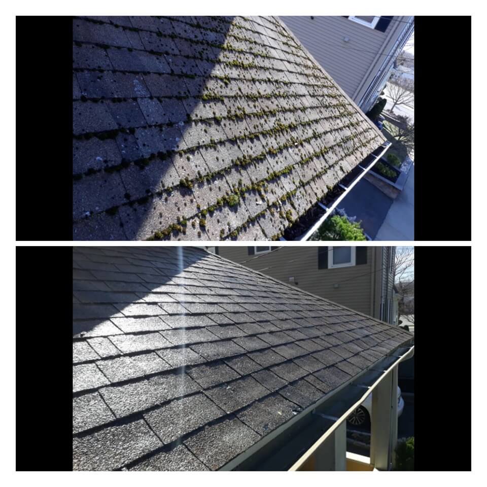 HiCleaners is the most experienced company in Walpole, MA that deals with roof washing and roof soft washing. All of our employees are trained to recognize precise solution mixing ratios to provide you with the safest and most effective soft washing service. Roofs are a commonly neglected part of a house due to the fact that most people don’t have ladders to access it, so it is very easy to just leave it alone and forget about problems that may start to arise. Just like many home owners, discoloration and small bits of moss on a roof can be overlooked because of the misconception that it is just aesthetic. However, it isn’t just aesthetic, the moss slowly lifts the granules off the shingles which in turn shorten the life of the shingle. The moss also spreads, just like any bacteria if it is left alone for too long, it can quickly become a problem that spirals out of control. Call HiCleaners for a free quote, we only use the most advanced eco-friendly solutions and equipment to make sure the job is done right, for the safety of the employees, your plants, grass, pets, and children.