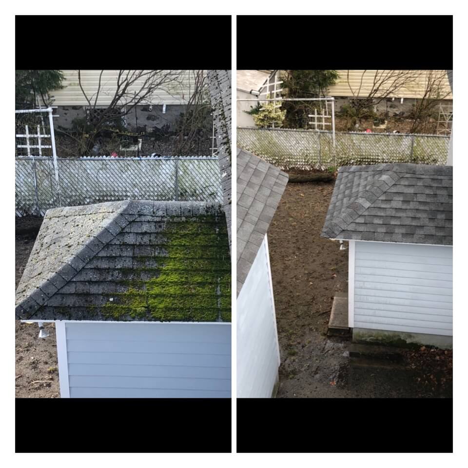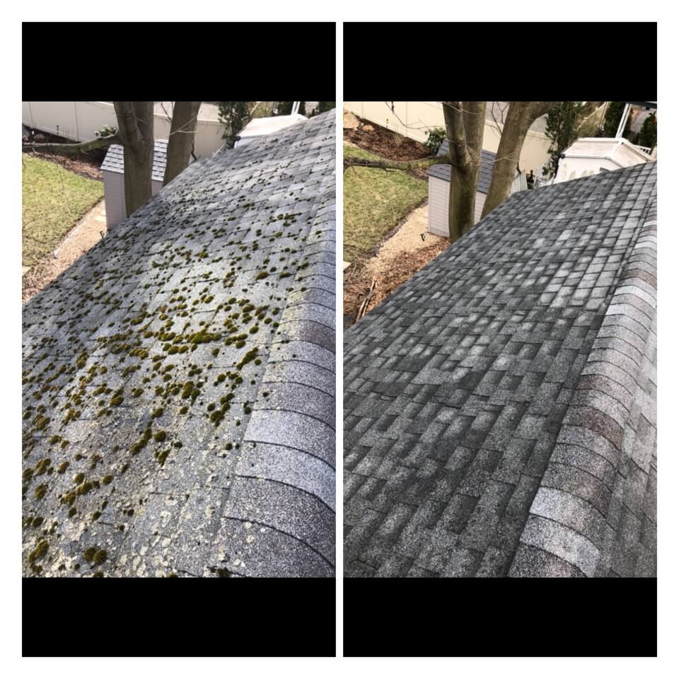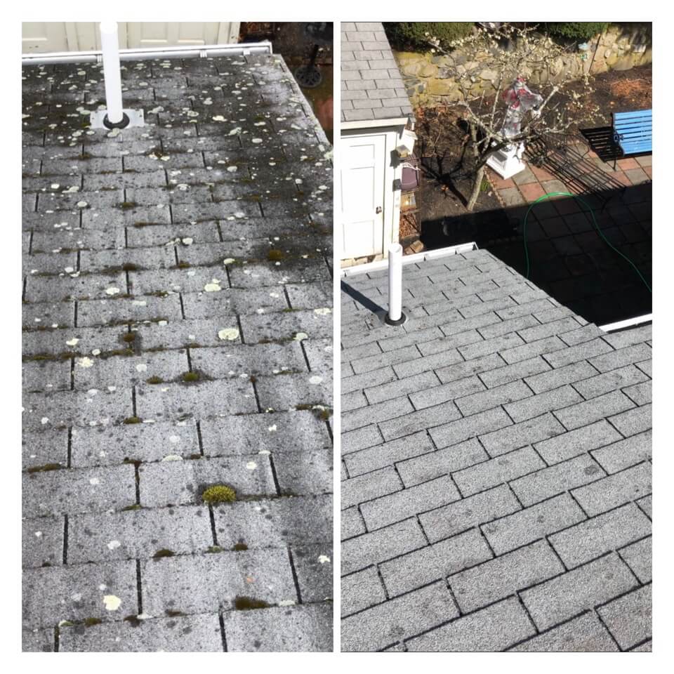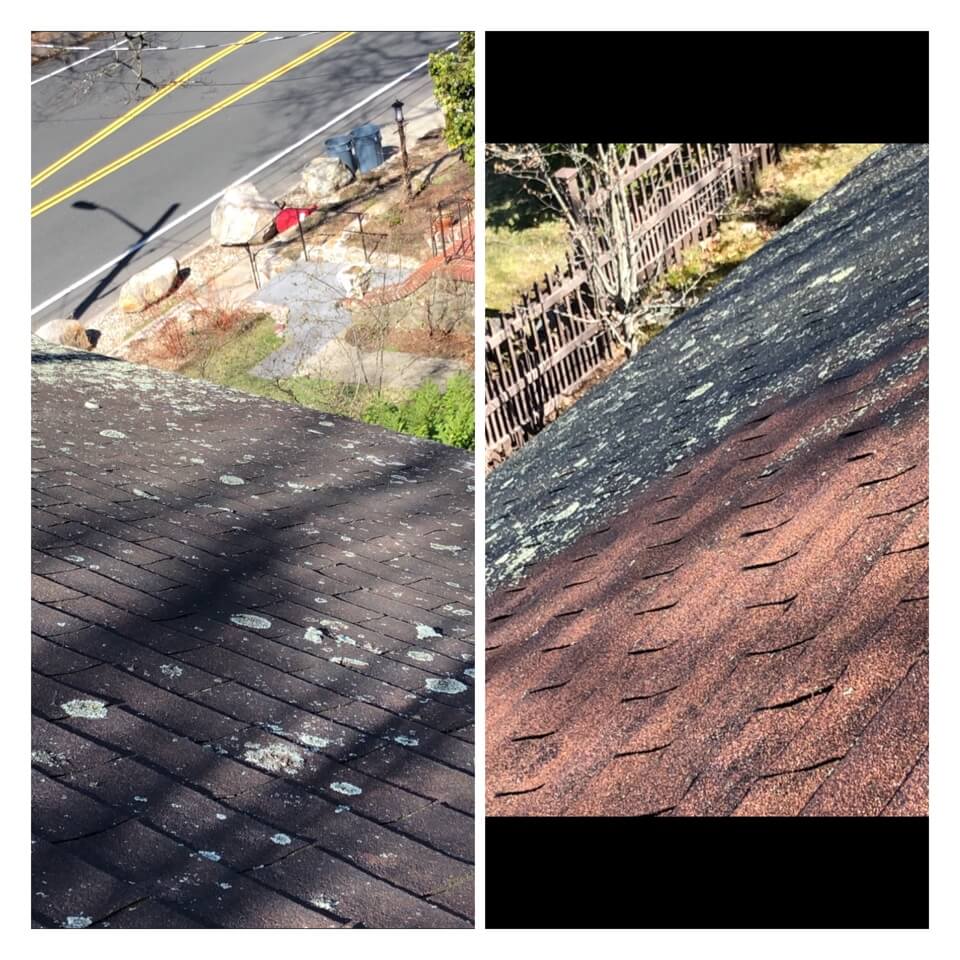 HiCleaners is the most experienced company in Walpole, MA that deals with roof washing and roof soft washing. All of our employees are trained to recognize precise solution mixing ratios to provide you with the safest and most effective soft washing service. Roofs are a commonly neglected part of a house due to the fact that most people don’t have ladders to access it, so it is very easy to just leave it alone and forget about problems that may start to arise. Just like many home owners, discoloration and small bits of moss on a roof can be overlooked because of the misconception that it is just aesthetic. However, it isn’t just aesthetic, the moss slowly lifts the granules off the shingles which in turn shorten the life of the shingle. The moss also spreads, just like any bacteria if it is left alone for too long, it can quickly become a problem that spirals out of control. Call HiCleaners for a free quote, we only use the most advanced eco-friendly solutions and equipment to make sure the job is done right, for the safety of the employees, your plants, grass, pets, and children.